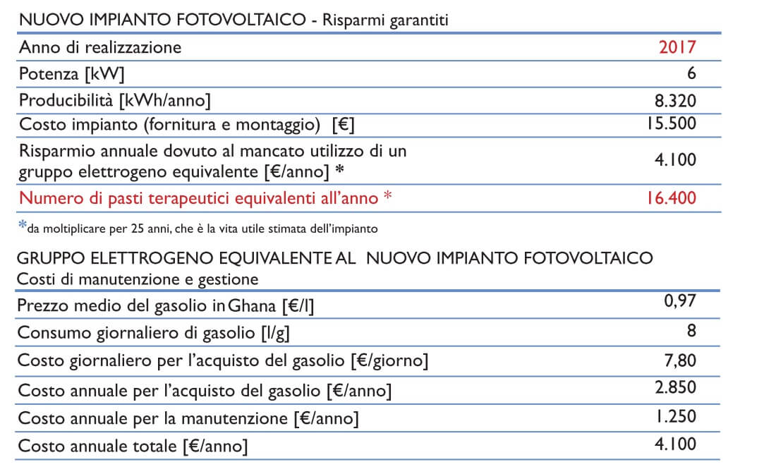 Kpassa è un villaggio di appena 5.000 abitanti dove è situata la missione dei Francescani Cappuccini, che in Ghana sono guidati dal superiore indiano Alphonse Varghese. I Cappuccini indiani si sono insediati nel Paese sin dal 2005. Forse perché provenienti da una terra con una forte storia rurale, hanno scelto di stabilirsi nei villaggi più sperduti del Ghana. Dove operano senza troppi problemi. Li aiuta certo il fatto che, a differenza di altre regioni africane in preda a forti convulsioni, qui la questione religiosa non porta a scontri da parecchio tempo. I cristiani sono la maggioranza e convivono pacificamente con le minoranze islamiche e animiste. Ma anche qui la mancanza di energia è il vero problema. E Seva for Africa è intervenuto donando e installando nella missione un impianto fotovoltaico. Coperto il 60% del fabbisogno energetico per un risparmio di circa 2.800 euro all’anno. All’interno del convitto vivono 20 persone fra religiosi, studenti ospiti e collaboratori, ma sono 250 ogni giorno gli allievi che possono frequentare le attività scolastiche o i corsi di formazione.