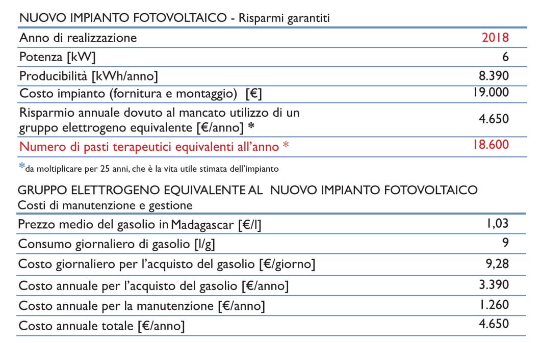 Nel 2018 nell’ambulatorio di Ampefy è installato un stand alone da 6 kW che ha reso autonomi il laboratorio di ottica, di odontotecnica, il dispensario e il centro nutrizionale.