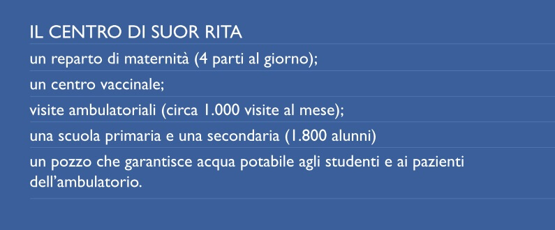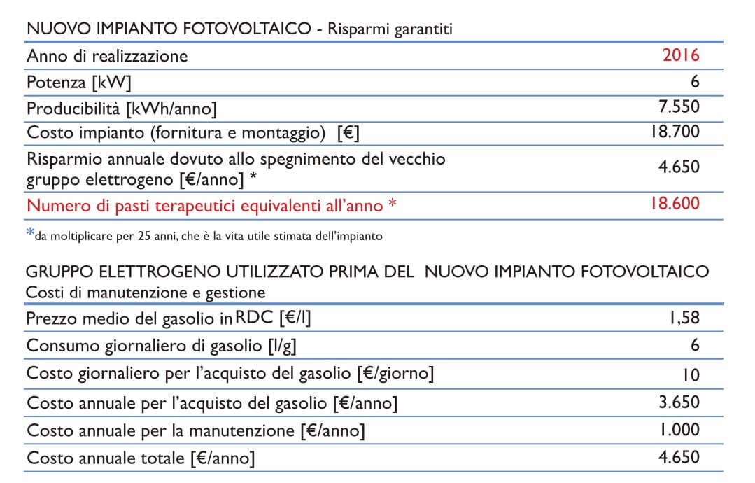 A Bukavu dal 2016 un impianto fotovoltaico stand alone da 6 kW alimenta un centro vaccini, un ambulatorio, una maternità, scuola primaria e secondaria.