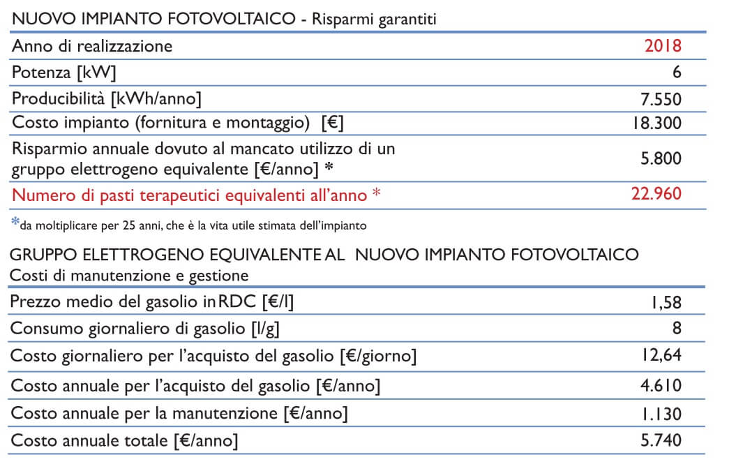 Attivo a partire dal 2018, a Bukavu un impianto fotovoltaico stand alone da 6 kW fornisce energia a centro accoglienza per bambini e ad una pompa per l’acqua potabile.